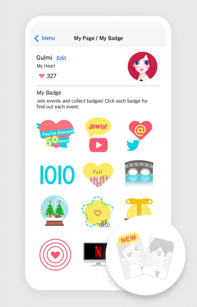 Check out โSun-oh and Hye-yeongโ badge in ‘My Page/My Badges’.